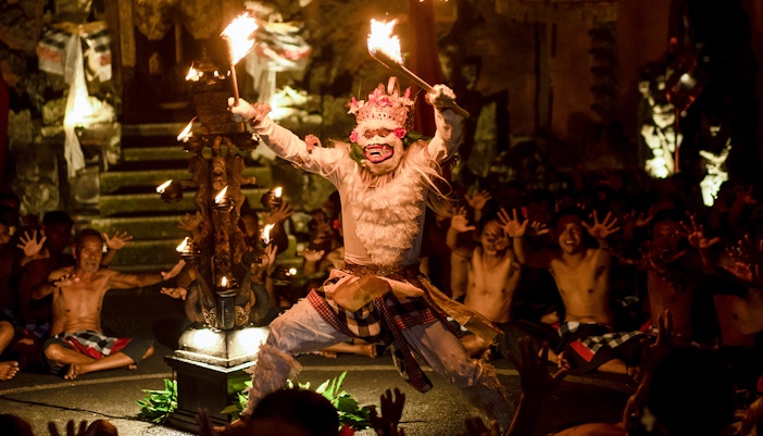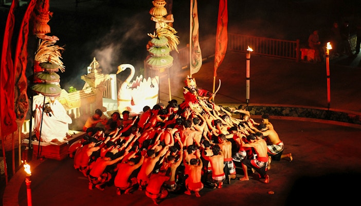 Till skillnad från utsmyckade danser med dräkter och instrument präglas Kecak av massor av sång, trans och eld, och blandar ritual och berättande på en utomhusarena.