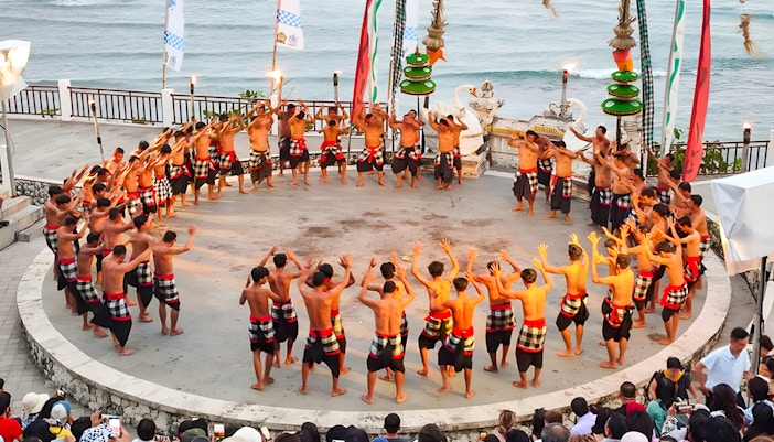Till skillnad från traditionella danser framförs Kecak av en kör med barbröstade män som sjunger "cak" i hypnotisk rytm, utan musikinstrument. Föreställningens cirkelformation, transliknande energi och eldiga bilder har gjort den till en ikonisk symbol för balinesisk kultur som förenar mytologi, andlighet och skådespel i en oförglömlig händelse.